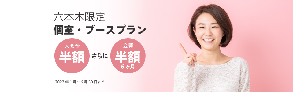 個室・ブースの新規お申込みで、月額会費がなんと3ヶ月無料です!